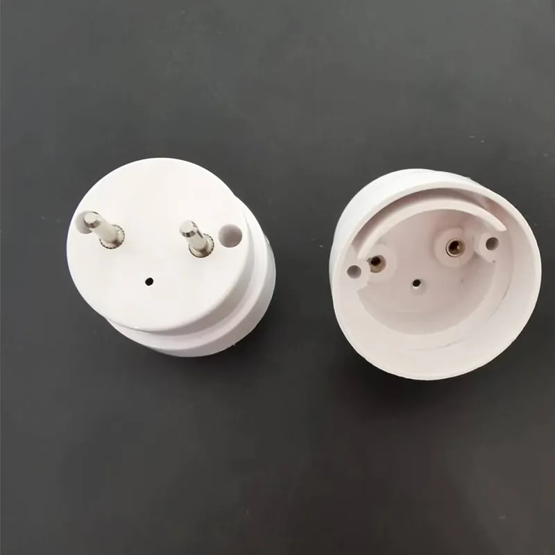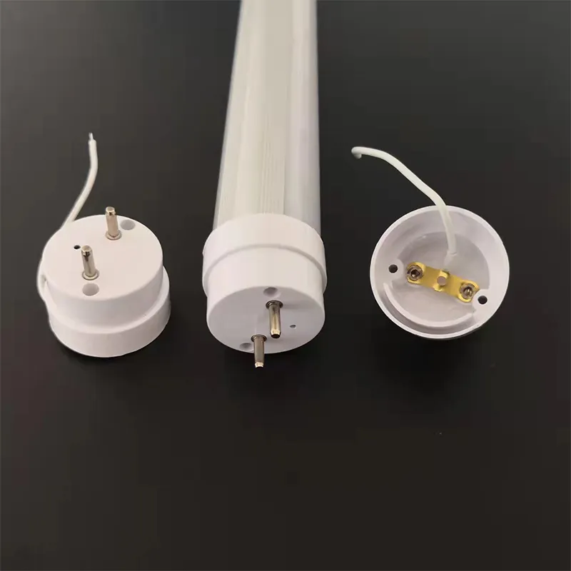 Dit is een conventionele T8 G13 -eindkap van ons bedrijf. G13 -eindkap verwijst naar de eindkap met twee pennen met een middelste afstand van 13 mm aan beide uiteinden van de buis. Het belangrijkste doel van het gebruik van G13 -eindkappen voor LED T8 -buizen is om fysiek compatibel te zijn met bestaande lamphouders (lamparmaturen) ontworpen voor traditionele fluorescentielampen T8. Gebruikers kunnen LED -buizen direct in de G13 -lamphouders van oude fluorescentielamphouders invoegen. De voedingsmethode van LED T8 -buizen verschilt echter van die van traditionele fluorescentielampen: traditionele fluorescerende buizen vereisen hoogspanningsstart (starter/elektronische ballast) en stroombeperking (ballast). De LED-buizen bevatten een laagspannings-DC LED-lampbellen en driver voedingen (constante stroombronnen).